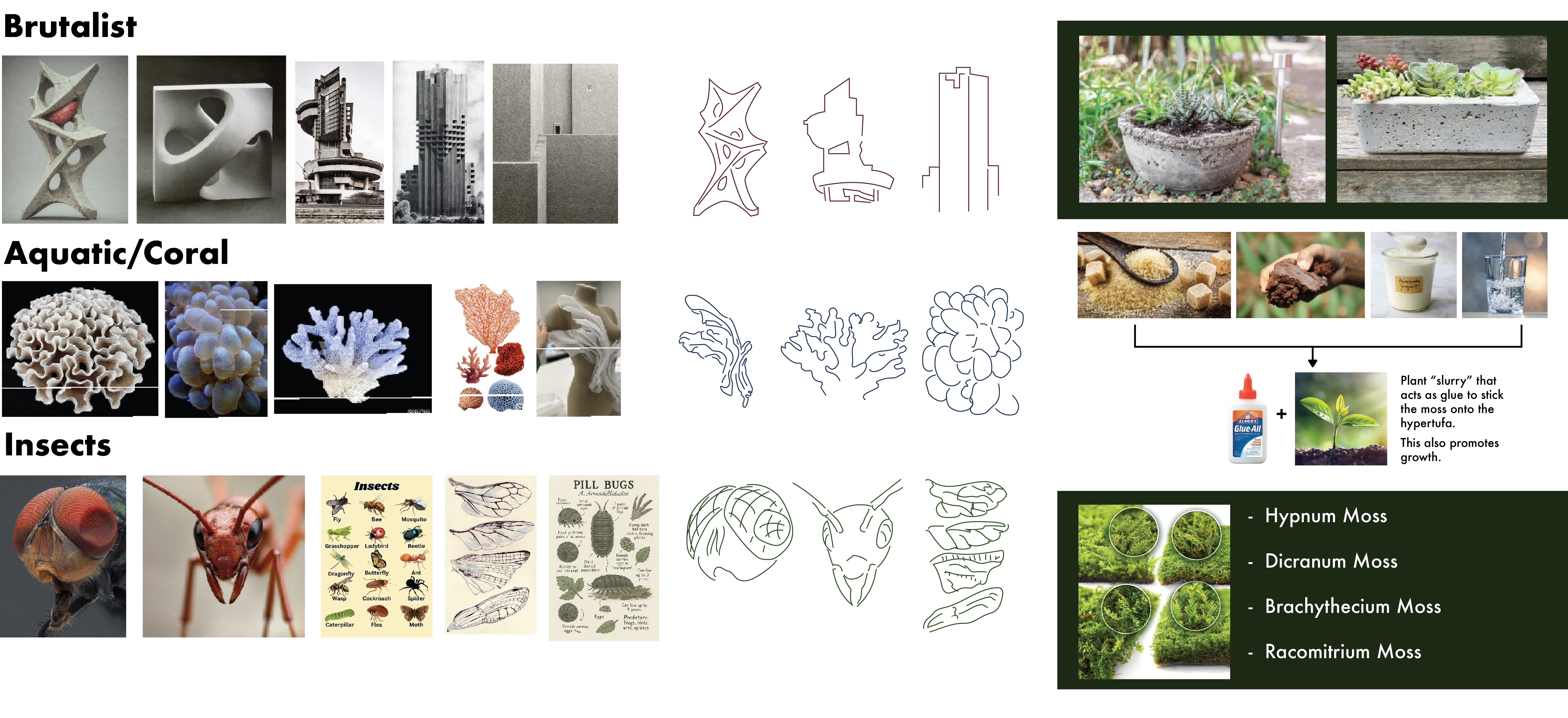 Focused primarily on researching organic forms and how they could be incorporated into a chess set using concrete made with moss.