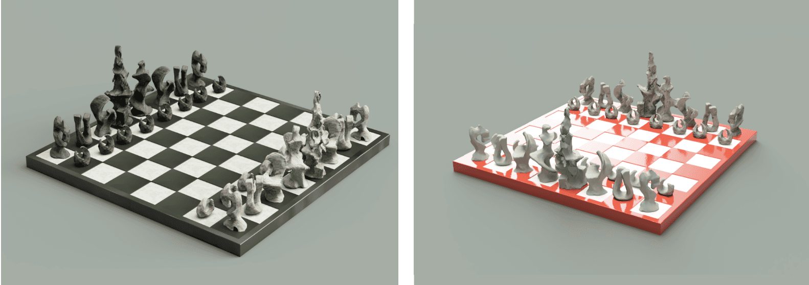 3D scanned each piece to obtain a .stl file for each chess piece, then rendered each piece before starting final cast.