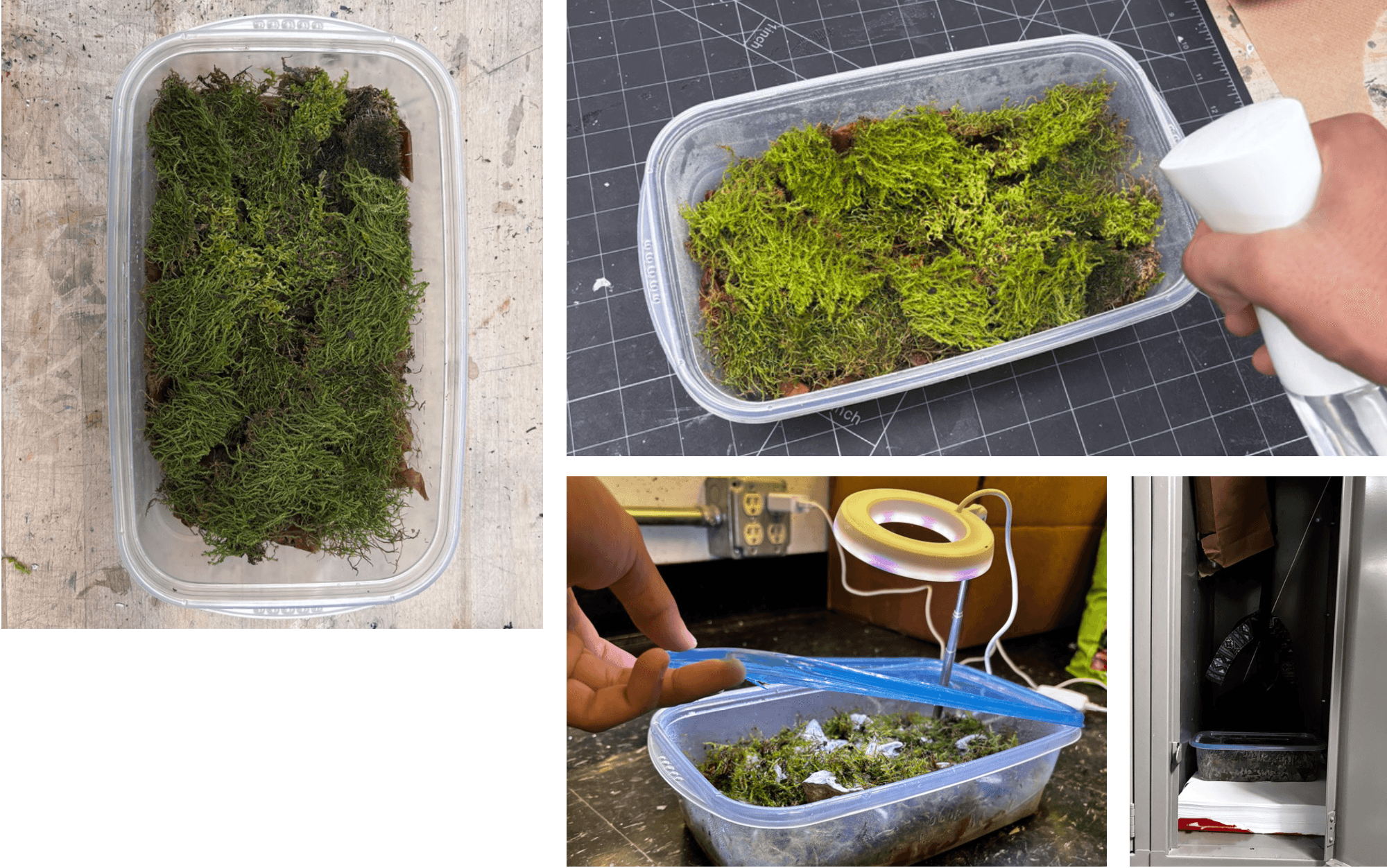 growing fresh live moss in a miniature locker greenhouse.